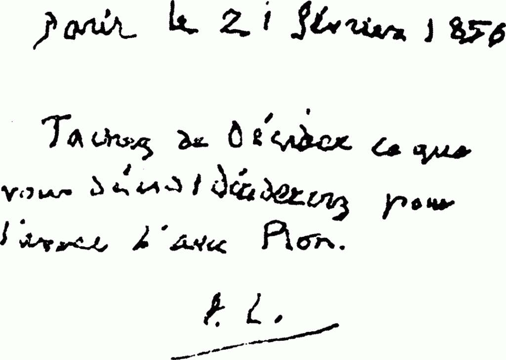 De l’avis de Robert Mallet, toujours d’esprit très délié et analytique, qui au reste a été dans sa jeunesse avocat, ayant eu un père et grand-père avocats, le jugement est à la fois très équitable et très adroit : 500 000 francs à moi le plaignant, à la maison Plon tous les frais.