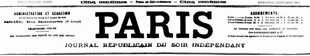 Paris est un quotidien fondé en 1881 par Charles Laurent, paru jusqu’au milieu des années 1930.