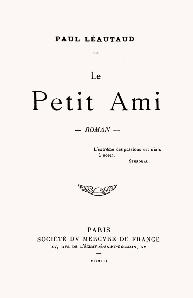« Plus je vais, et plus je pense qu’on ne devrait peut-être commencer à écrire que vers quarante ans. Avant, rien n’est mûr, on est trop vif, trop sensible, pour ainsi dire, et surtout on aime encore trop la littérature, qui fausse tout. » Ainsi s’exprime à un endroit de son livre M. Paul Léautaud, l’auteur du Petit ami. Je ne sais pas l’âge qu’a M. Léautaud. Quoique Le Petit ami soit le premier livre qu’à ma connaissance il publie, ce n’est certainement pas un jouvenceau. Il y a de la mélancolie rétrospective dans ses pages, une sorte de langueur provoquée par les souvenirs et que le jeune homme ne connaît point.
