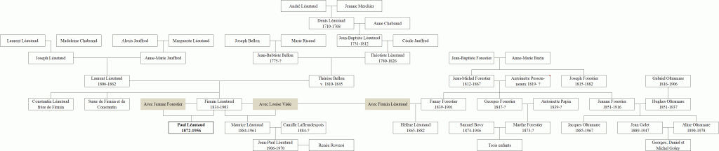 La chose est perfectible et toute aide sera la bienvenue. Il reste qu’il s’agit ici du plus important arbre généalogique de Paul Léautaud connu à ce jour. Tout démenti sera accueilli avec enthousiasme (et reconnaissance).