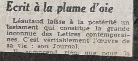 Cette phrase est tirée d’un article… nécrologique. La nouvelle, fausse, de la mort de Léautaud avait couru en ce mois de mai 1941. Les « papiers » parus à cette occasion divertirent fort l’intéressé, lorsqu’ils ne furent pas le prétexte de nouvelles brouilles.