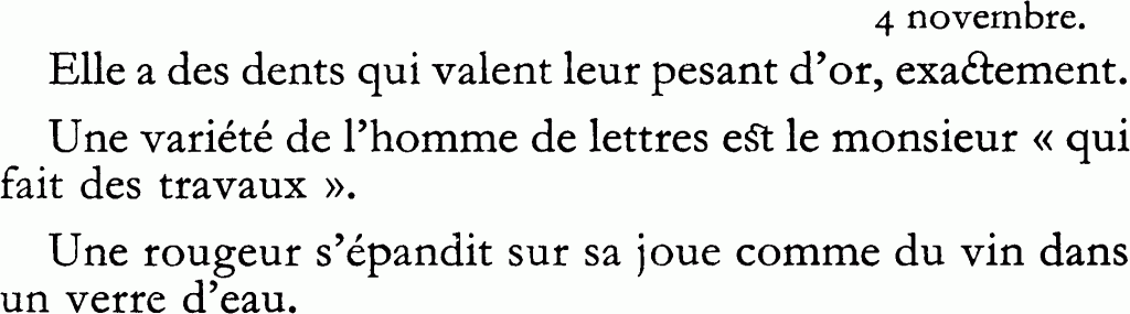 « Quand nous nous fûmes extasiées sur le calme et le bon air dont on jouissait dans cette solitude, il fallut bien en arriver au Journal. “Pouvons-nous voir votre manuscrit ?” hasardai-je enfin. — Oui, répondit Léautaud d’une voix encore plus éteinte, mais il faut entrer dans la maison. » Ce que nous fîmes à sa suite.
