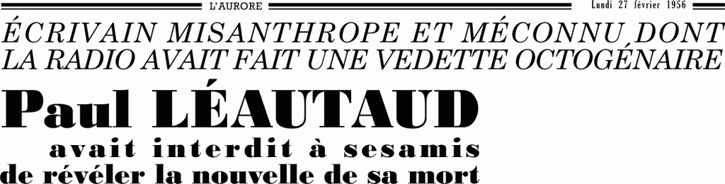 Écrivain misanthrope et méconnu dont la radio avait fait une vedette octogénaire, Paul Léautaud avait interdit à ses amis de révéler la nouvelle de sa mort.