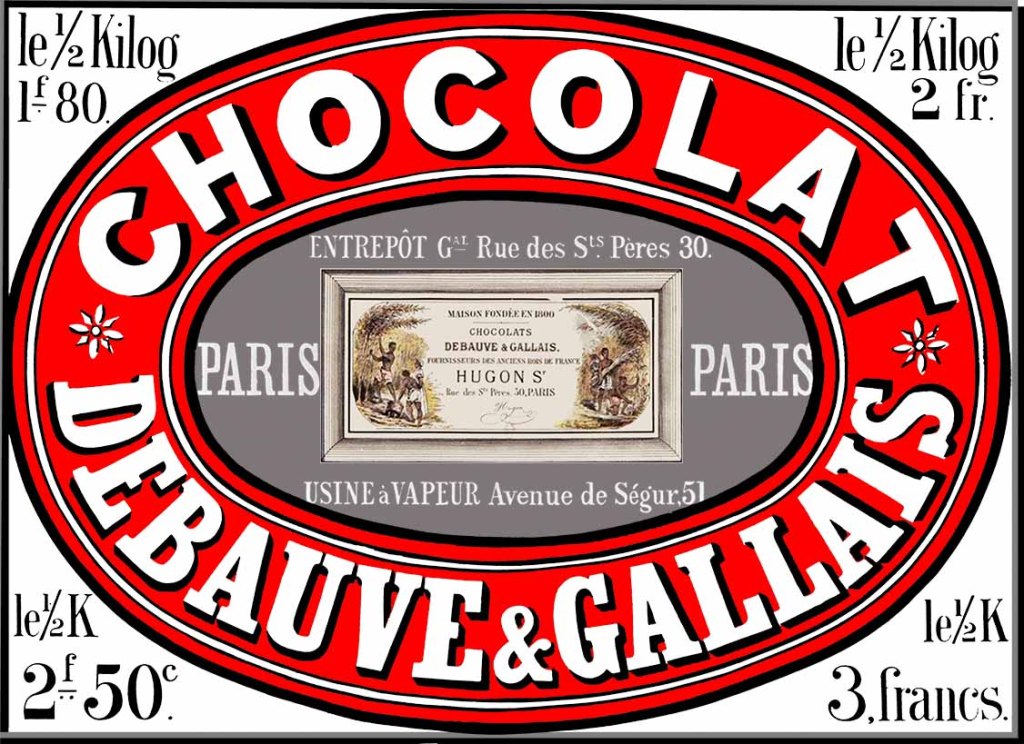 Il fallait donc un pharmacien, Sulpice Debauve (1757-1836), qui fut celui de Louis XVI, pour fonder en 1800, une chocolaterie qu’il implanta « près de la rue Saint-Guillaume, ci-devant5 rue Saint-Dominique, no 4 ». Fournisseur de la famille royale, de nouveaux locaux sont construits en 1819, rue des Saints-Pères. En 1823, Debauve s’associe à son neveu, le pharmacien Jean Baptiste Auguste Gallais (1787-1838). La marque Debauve & Gallais était créée.