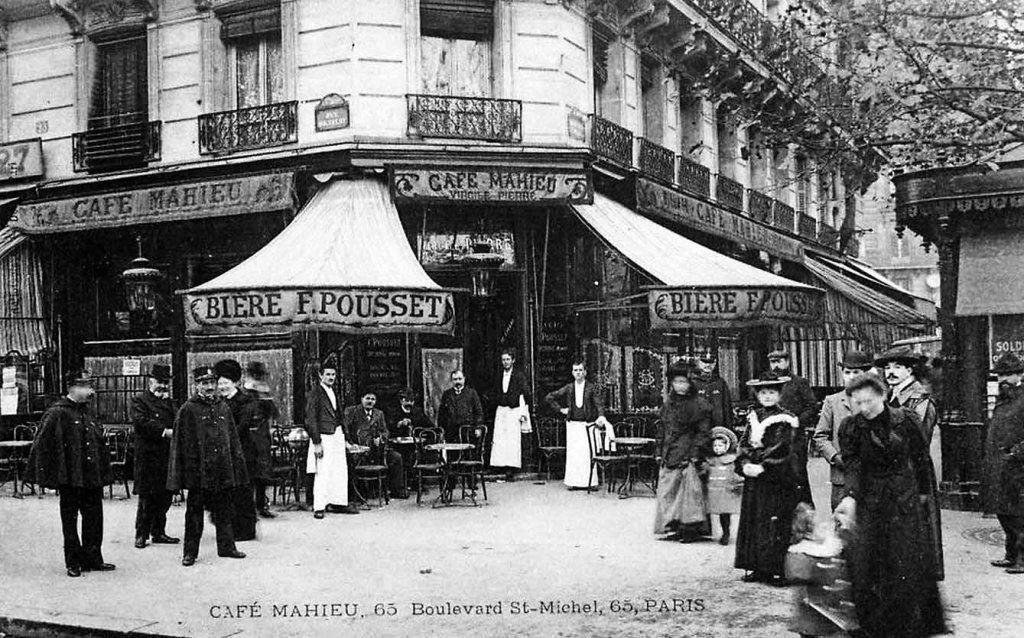 Parlerait-on encore aujourd’hui de cet établissement disparu dans les années soixante, si Paul Verlaine ne l’avait fréquenté ? Les Cafés de Paris, par un flâneur patenté (Étienne-François Bazot) est un petit ouvrage édité en 1819. Il recense le Procope, le Manoury, le Tortoni, ceux de l’Ambigu et de la Gaîté, celui du Caveau ou de la Rotonde, et bien d’autres. Mais le boulevard Saint-Michel n’existant pas encore, le Café Mahieu devra attendre la percée de cette voie projetée par le baron Haussmann. L’ordonnance du trente juillet 1859 décrète la création de ce boulevard, mais le guide Paris Illustré d’Adolphe Joanne, édité chez Louis Hachette et Cie en 1867, ne le cite pas encore. Son ouverture à la circulation date probablement de la fin du Second Empire ou peu après la Commune de Paris.