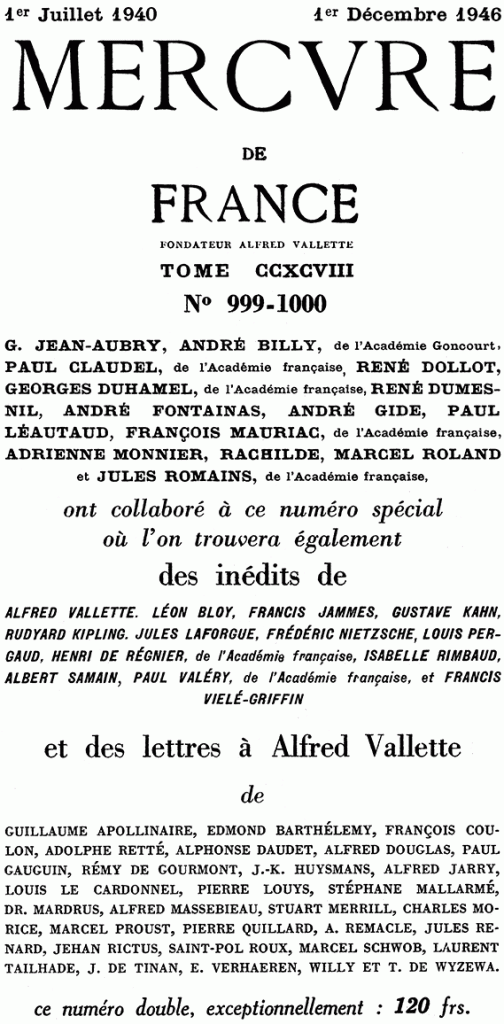 NOTE : Cette page remplace la page « Le Mercure de France (1946) » qui avait pour adresse « mercure-1 » et qui a été supprimée.
