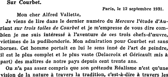 36 Mercure du quinze septembre 1931, pages 598-612 : « Sur trois toiles de Courbet — Vénus et Psyché, Paresse et Luxure, L’origine du monde ». « Le seul livre vraiment digne de Courbet, Georges Riat l’a écrit avant de mourir. C’est, sans contredit, la meilleure étude sur le maître d’Ornans. »