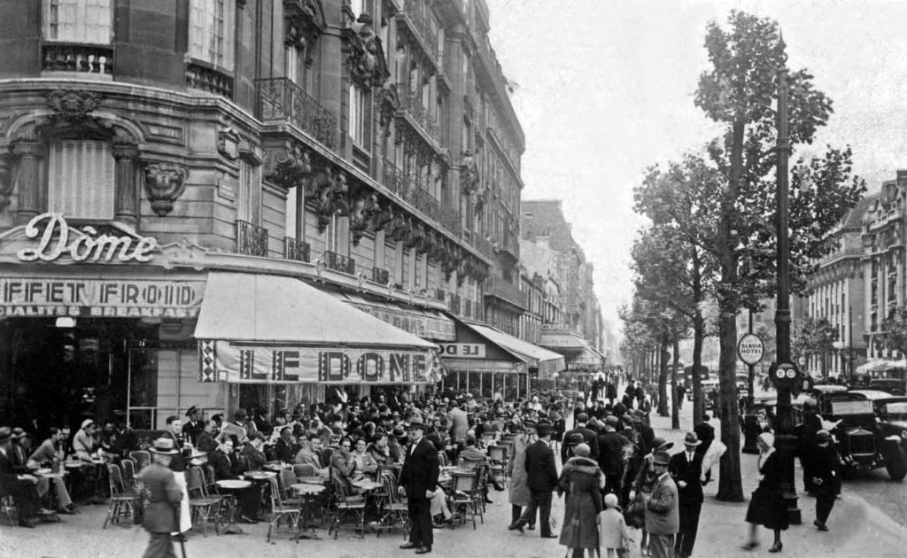 63 Ne nous méprenons pas ; quand on habite rue de la Grande Chaumière, Le Dôme est juste le café le plus proche, le café du coin. Il y a juste le boulevard Raspail à traverser. Ci-dessous, le Dôme à cette époque. En arrière-plan, la Coupole.