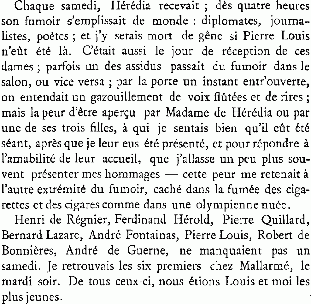 Il y a dans le numéro de janvier de la Nouvelle Revue française un chapitre de souvenirs d’André Gide. Portraits d’Herold, Fontainas, Mockel, extrêmement réussis, vrais et amusants42.