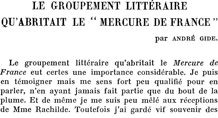 Lisons le texte qu’André Gide — auteur NRF — a écrit dans ce numéro du Mercure228.