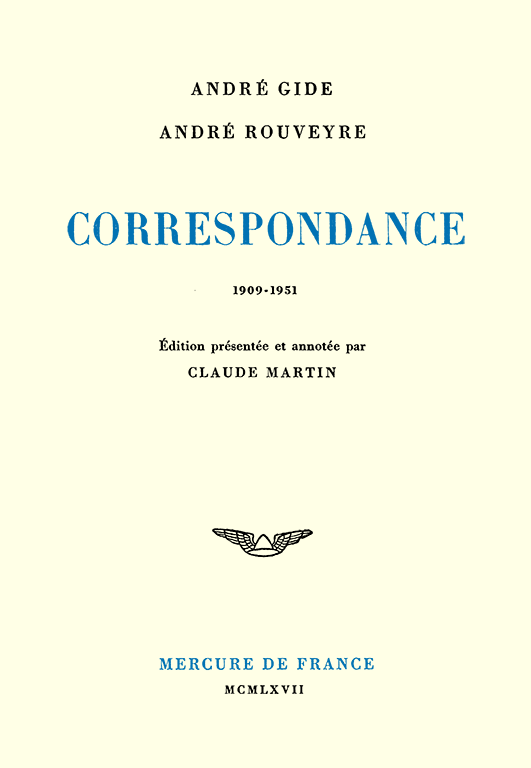André Gide et André Rouveyre étaient amis. En 1967, Claude Martin a édité leur Correspondance (136 lettres) pour le Mercure de France (285 pages).