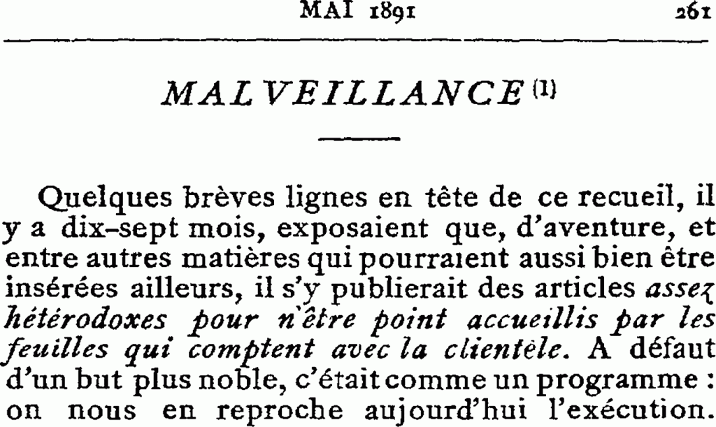 16 Allusion à l’éditorial du premier numéro du Mercure (janvier 1890 page quatre).