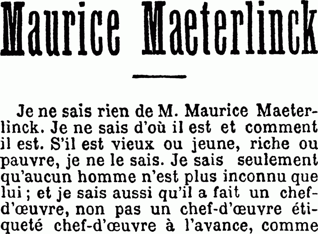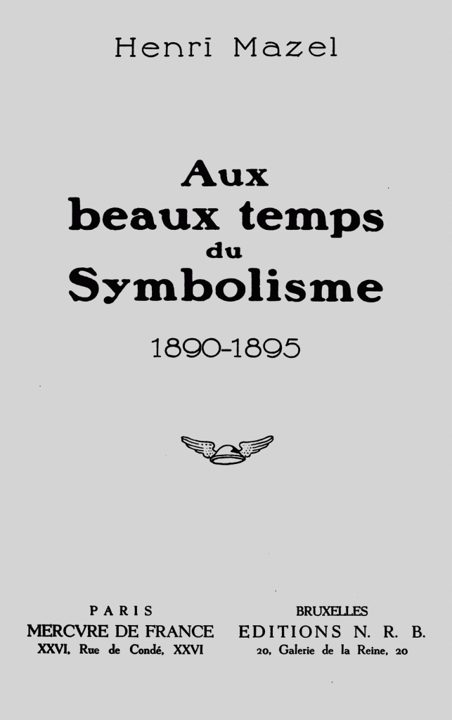 Ce texte est extrait de l’ouvrage d’Henri Mazel Aux beaux temps du symbolisme 1890-1895 paru au Mercure de France en 1943.