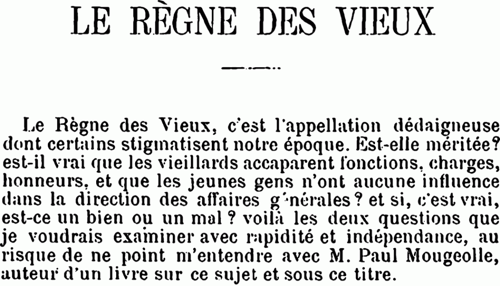 35 Sans chercher davantage, dans le numéro de janvier 1891 pour un article sur « Le Règne des vieux » (pages 20-25).
