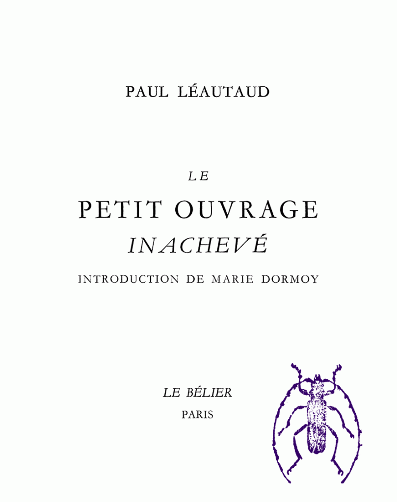 46 Ce Petit ouvrage inachevé ne paraîtra pas dans La NRF. Il sera publié par Marie Dormoy en avril 1964 aux éditions du Bélier, douze ans après la mort de Paul Léautaud.