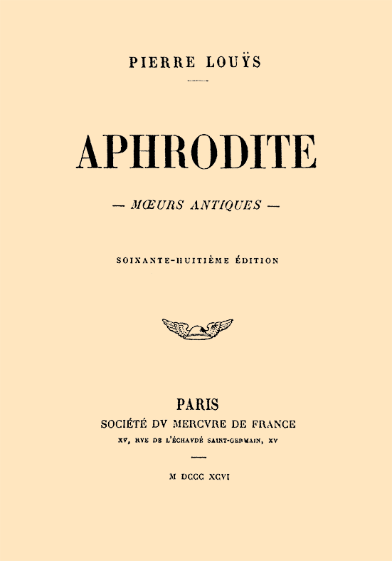 C’est donc le Mercure de France qui publie le 28 mars 1896 Aphrodite, premier roman de Pierre Louÿs, à une époque où La NRF n’existe pas encore.