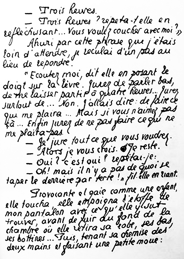 26 La vente a eu lieu à l’hôtel Drouot le 26 juin, en deux lots. Les lettres de Paul Valéry à Pierre Louÿs se sont vendues 33 000 francs et celles de Pierre Louÿs à Paul Valéry 9 800 francs. On voit bien que la cote de Paul Valéry, élu à l’Académie française en novembre 1925 (Pierre Louÿs étant mort en mai de la même année) est encore vive. On peut aussi noter qu’au cours de cette même séance a été vendue une lettre de Guy de Maupassant pour 18 000 Francs.