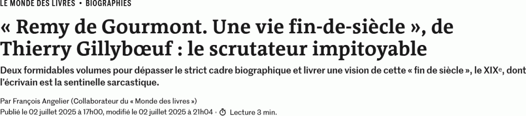 « Cher Thierry Gillybœuf, vous avez consacré deux gros volumes biographiques à Remy de Gourmont, en 2025, qui sont parus aux éditions La Part Commune. Qu’est-ce qui a motivé votre intérêt ? »