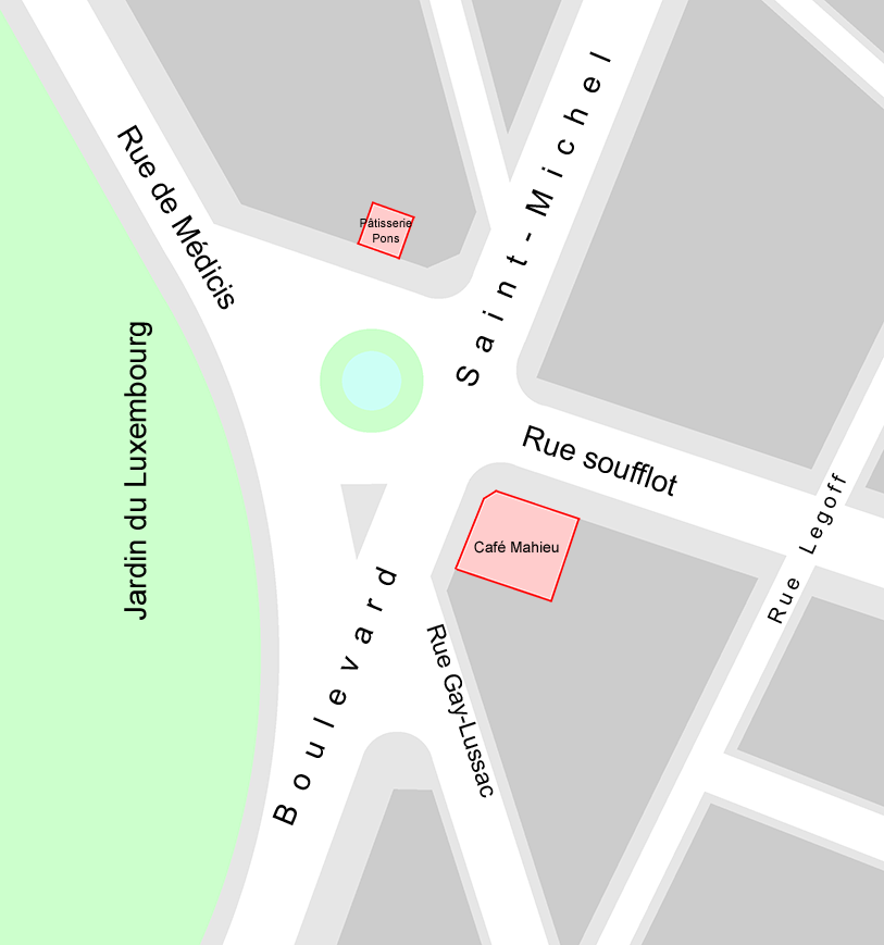 3 65, boulevard Saint-Michel (à l’angle de la rue Soufflot) jusque dans les années 1960. Ce café sera plusieurs fois cité dans le Journal littéraire.