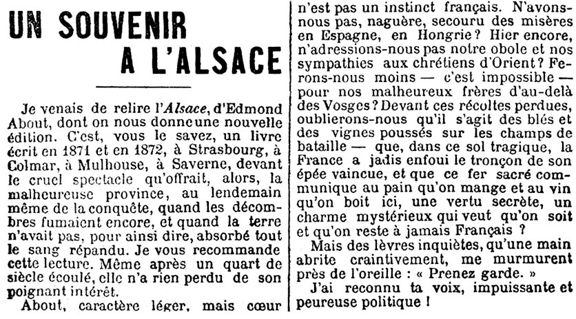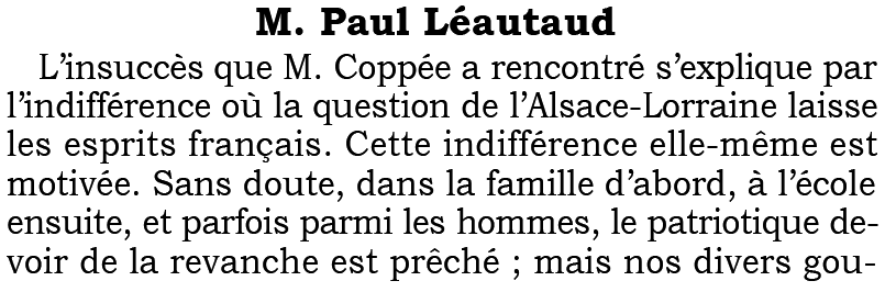 | Décembre 1897 | Réponse de Paul Léautaud à l’enquête sur « L’Alsace-Lorraine et l’état actuel des esprits » |