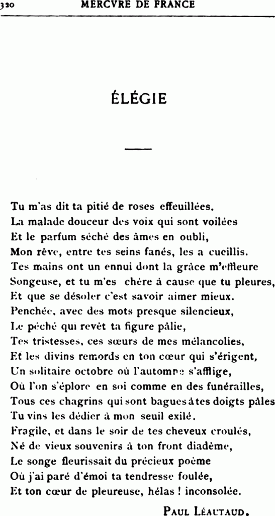 Après les poèmes du Courrier français, journal de l’assez triste Jules Roques (1850-1909), Paul Léautaud a pu enfin paraître dans le Mercure de France.