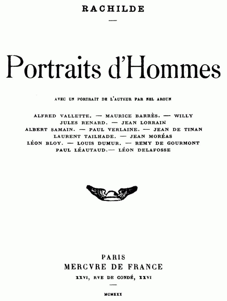 Liens dans cette page : Rachilde : Portraits d’hommes
