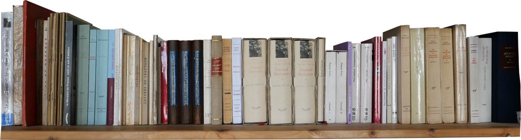3 Si l’on excepte une collection de Pléiade, rien n’est plus moche — ou triste, si l’on veut — qu’une bibliothèque, évidemment constituée d’un assemblage parfaitement hétéroclite de dos de livres, mélange absolument disparate de couleurs et de formes. Les seuls matériaux constants étant le papier et la poussière. La règle — généralement observée mais pas toujours — est que celle-là ne doit pas dépasser celui-ci, au moins en volume, sinon en poids. Et dans une bibliothèque, le pire rayonnage est celui renfermant les livres de Paul Léautaud, contenant quelques ouvrages très larges (le Journal) et de nombreux autres fort minces, dont une multitude de petits assemblages comme celui dont il est question ici.
