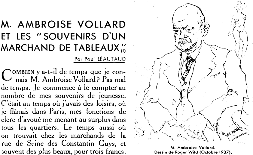 Paul Léautaud a quelques fois rencontré Ambroise Vollard. Marie Dormoy le connaissait bien, elle fut à partir de 1930 sa secrétaire suppléante, ou sa dame de compagnie, comme on voudra.